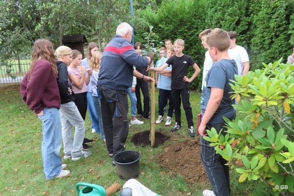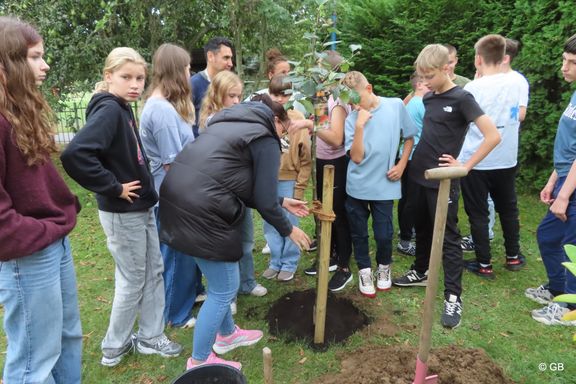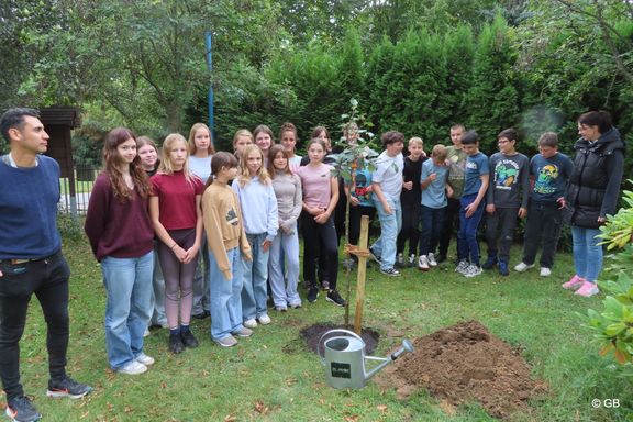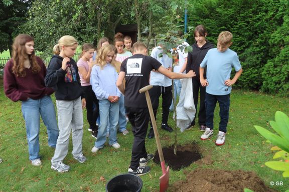 Die 7b hat für die siebenten Klassen des Jahrgangs 2025/26 unserer Gesamtschule den nunmehr vierten Apfelbaum auf dem Gelände des Schullandheimes in Jerischke gepflanzt. Auch diese Aktion wird traditionell vom Förderverein der Gesamtschule des Landkreises Spree-Neiße e.V finanziell getragen.